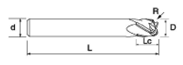 | Série ré'outils | Diamètre | R.ayon | R.ayon de coin | Longueur de la flûte | Longueur efficace | Longueur totale | Diamètre de la tige | |||