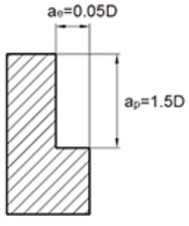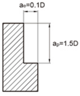 Le tableau ci-dessus montre les valeurs standard pour l'usinage par fraisage latéral. Lors de la découpe de rainures avec l'outil, la vitesse doit être comprise entre 50 % et 70 % du tableau ci-dessus et la vitesse d'avance doit être comprise entre 40 % et 60 % comme valeur standard.