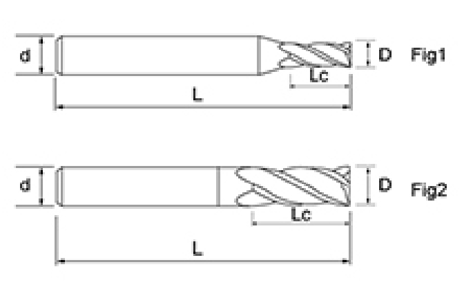 | Non. | réiamètre D | Longueur rée la flûte LC | Longueur totale L | Diamètre de la tige d | Nombre de lames F |