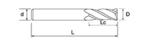 | Non. | Diamètre D | Longueur rée la flûte LC | Longueur totale L | Diamètre de la tige d | Nombre de lames F |