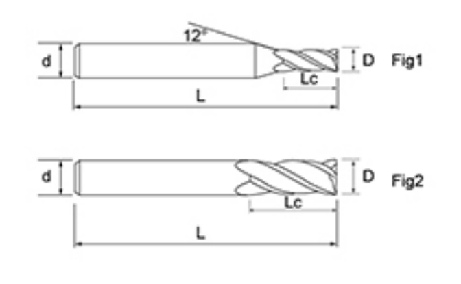 | Non. | réiamètre D | Longueur rée la flûte LC | Longueur totale L | Diamètre de la tige d | Nombre de lames F |