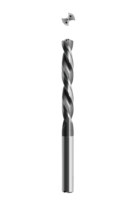 • Foret hélicoïdal à tige droite avec refroidissement interne/externe.