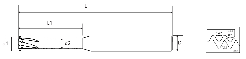 Cette série couvre les tailles de filetage métriques de M0,8 à M30, avec une large gamme de diamètres pour répondre à divers besoins de filetage. La méthode de filetage à une seule dent réduit les charges de coupe et les exigences de couple de broche tout en diminuant la contrainte de l'outil, contribuant ainsi à une plus grande précision d'usinage. La longueur de coupe effective et les dimensions de la tige sont optimisées pour équilibrer rigidité et flexibilité, ce qui rend l'outil adapté à la fois aux petits composants de précision et à l'usinage de filetages plus grands.