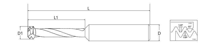 Cette fraise est idéale pour les alliages d'aluminium, les alliages de magnésium, et est également efficace sur certains métaux mous comme le laiton. Il offre une compatibilité flexible avec des tailles de filetage allant de M1,6 à M12, avec des diamètres d'outils et des spécifications précisément adaptés aux diverses exigences d'usinage. La conception de l'outil comprend 2 à 4 arêtes de coupe pour équilibrer la stabilité et l'efficacité de l'évacuation des copeaux dans différentes conditions de travail.